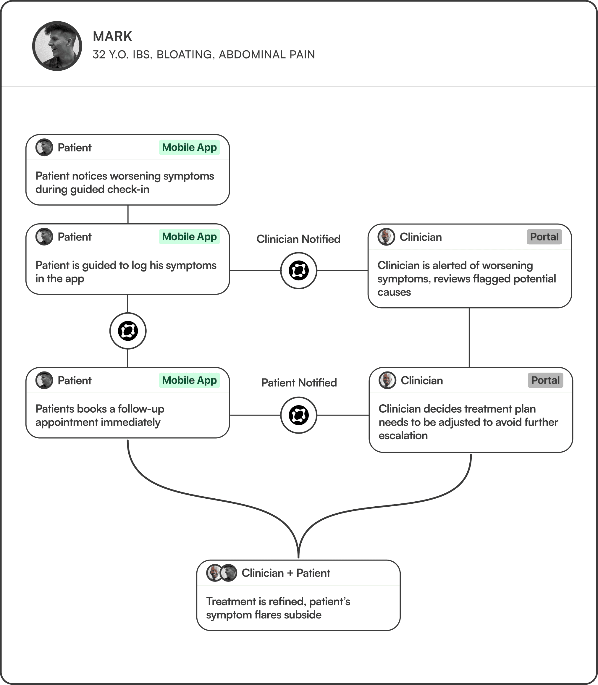 Patients know exactly what to track, when to track it, and why it matters, with guidance that adapts as their condition changes.